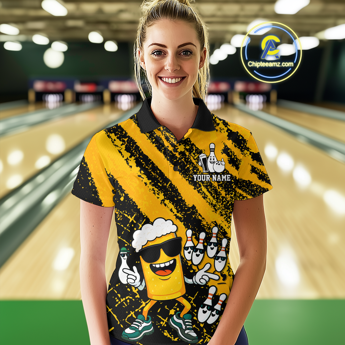 Custom Funny Beer Bowling Shirt Team Bowling League Jersey for Women Polo & 1/4-Zip QZT759
