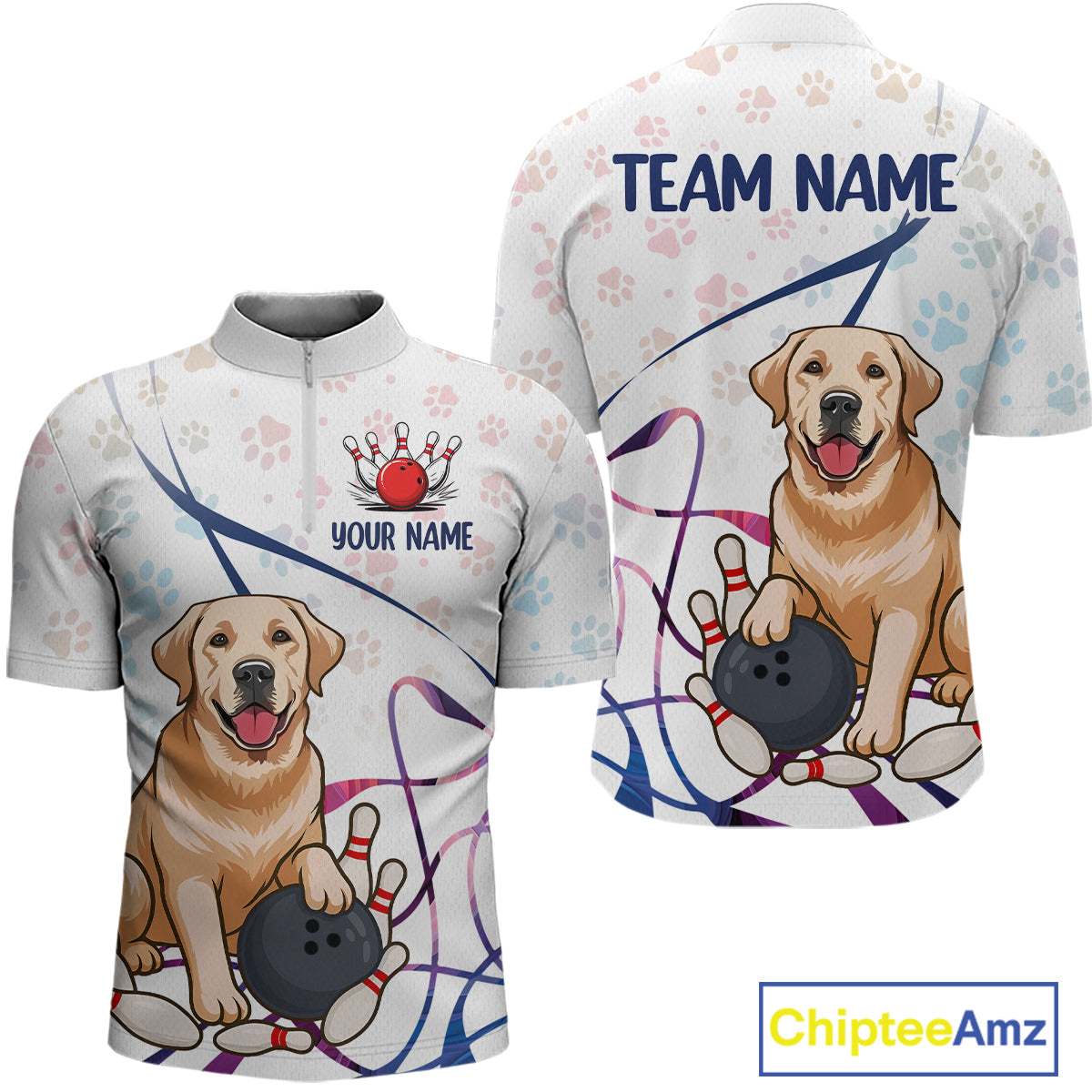 Custom Funny Dog Paw Bowling Men Polo & 1/4 Zip Shirts Bowling Team Jerseys HNT95