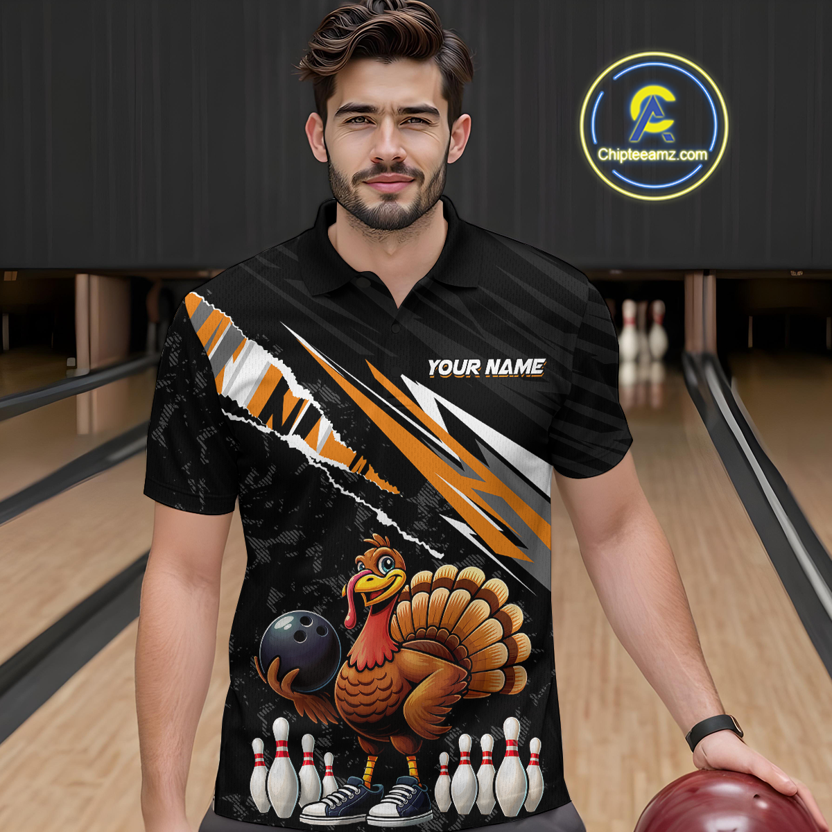 Custom Orange Funny Turkey Bowling Jersey for Men Thanksgiving Bowling Shirts Polo & 1/4 Zip HNT117