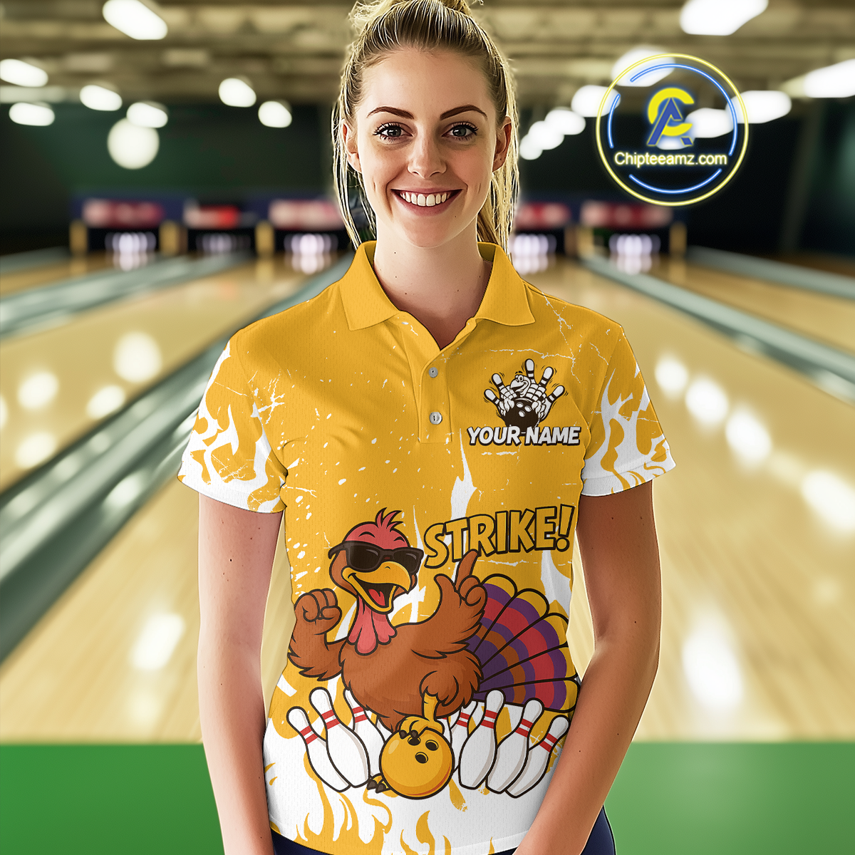 Custom Yellow Funny Turkey Bowling Jersey for Women Thanksgiving Bowling Team Shirts HNT115