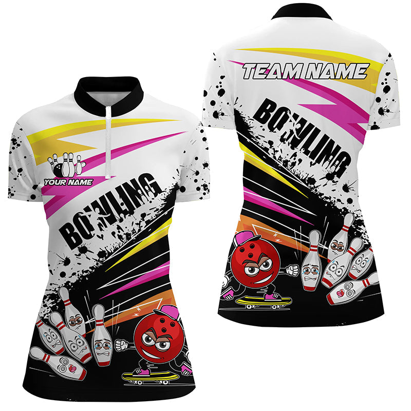 Funny colorful bowling ball and pins bowling Polo, 1/4 Zip Shirt for Women Custom Team Bowling jerseys NQS8047