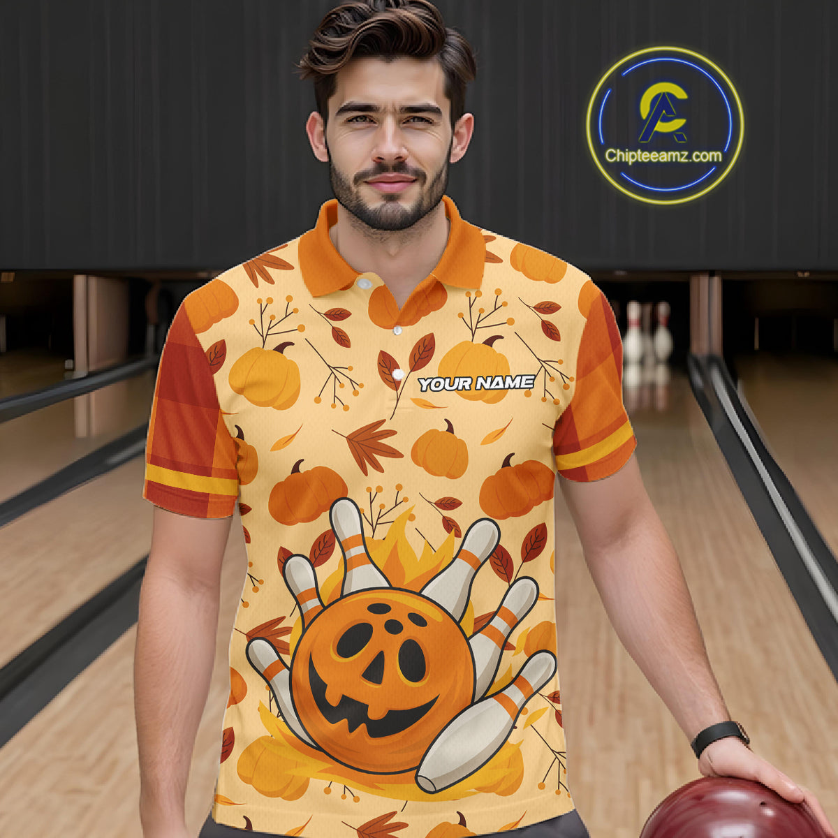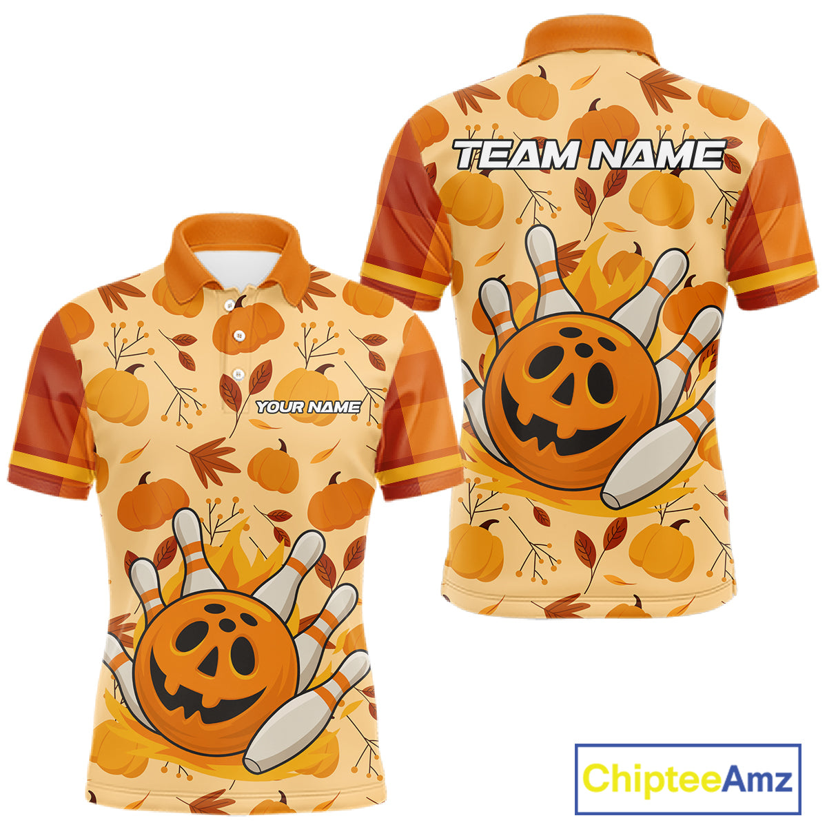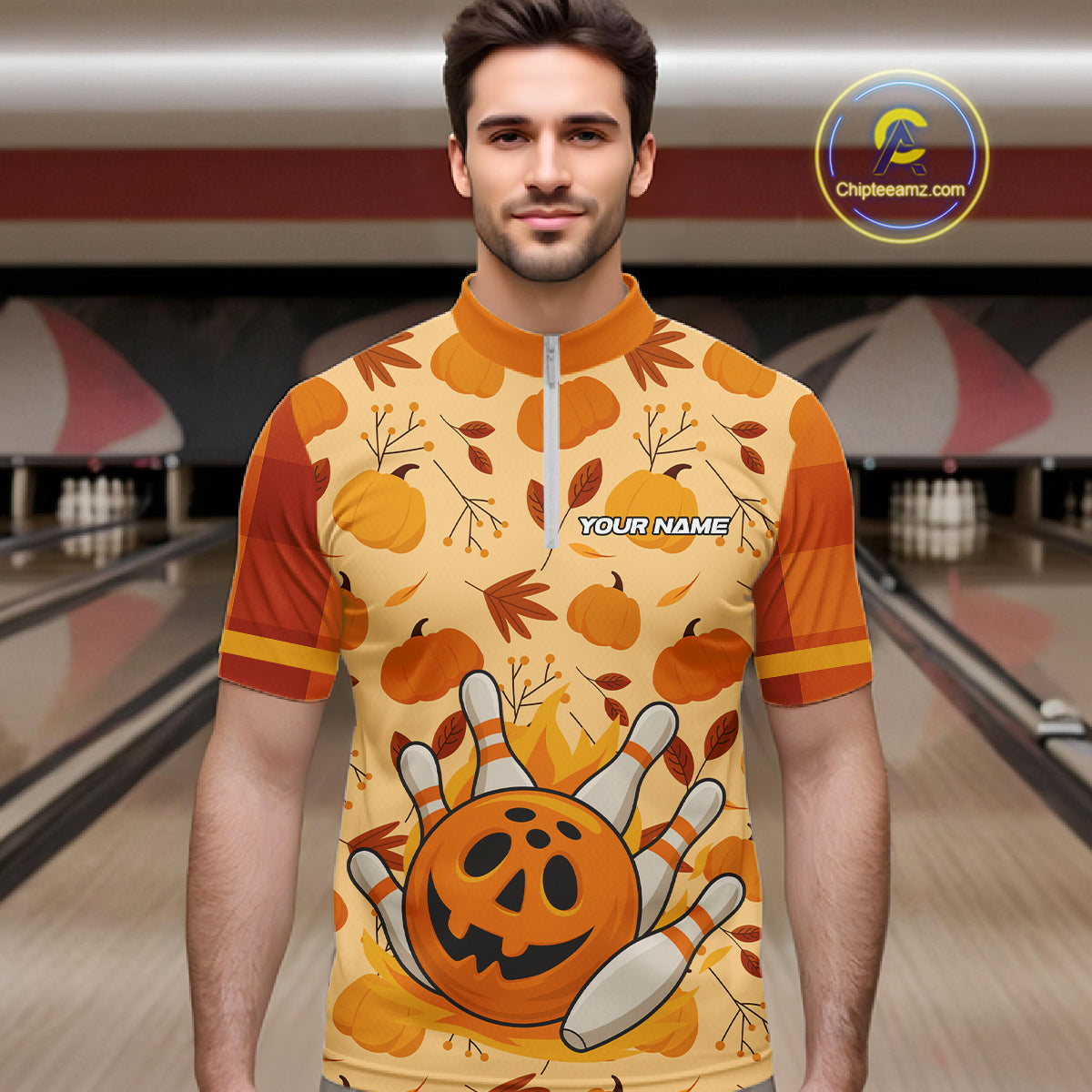 Funny Pumpkin Bowling Ball and pins Bowling Shirts for Men custom Halloween bowling team jerseys NQS10531