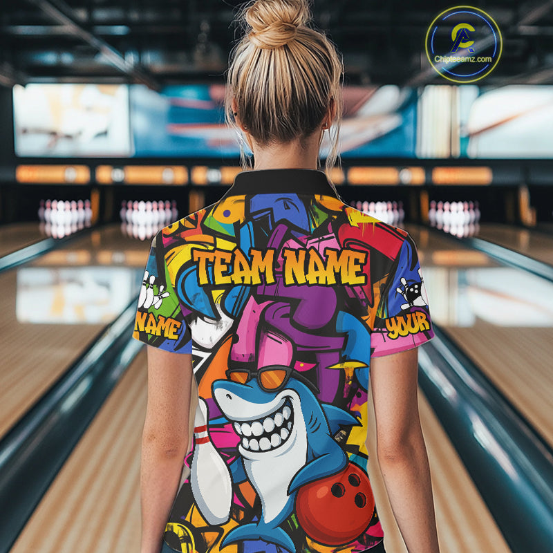 Funny Shark Bowling Shirts For Women Custom Colorful Shark Bowling outfit, Team Bowling Jersey NQS9815