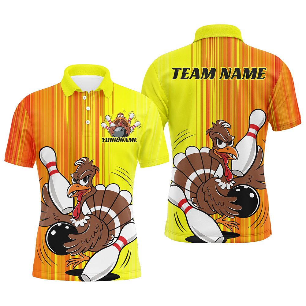 Orange And Yellow Custom Funny Turkey Bowling Shirts For Men, Thanksgiving Bowling Team Outfits IPHW7660