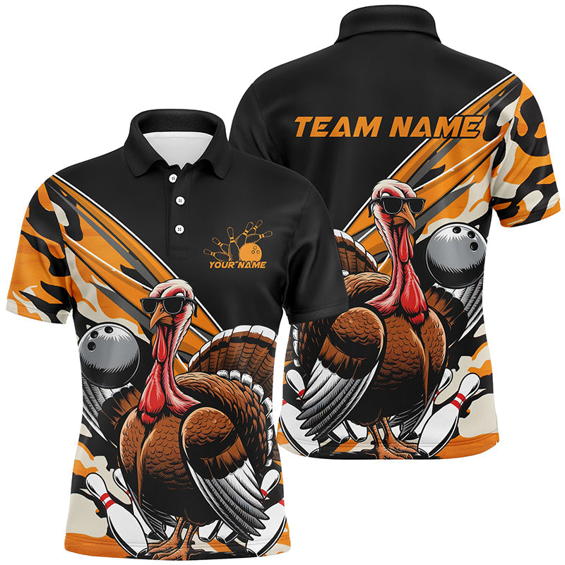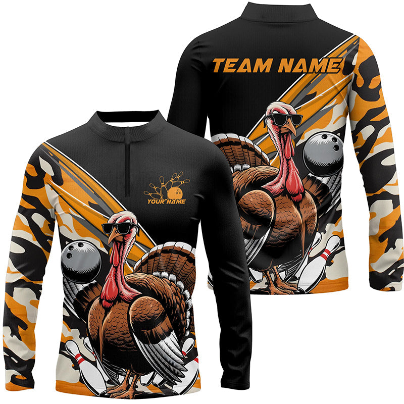 Black And Yellow Camo Custom Funny Turkey Bowling Shirts For Men, Thanksgiving Bowling Tournament IPHW7881