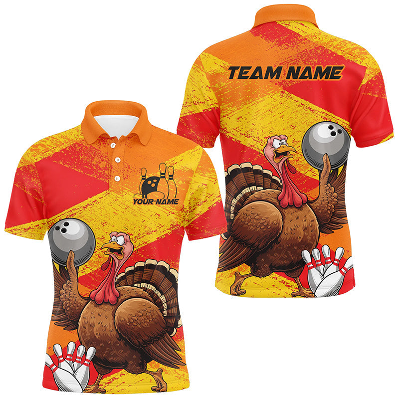 Orange And Yellow Custom Funny Turkey Bowling Shirts For Men, Thanksgiving Bowling Team Outfits IPHW7882