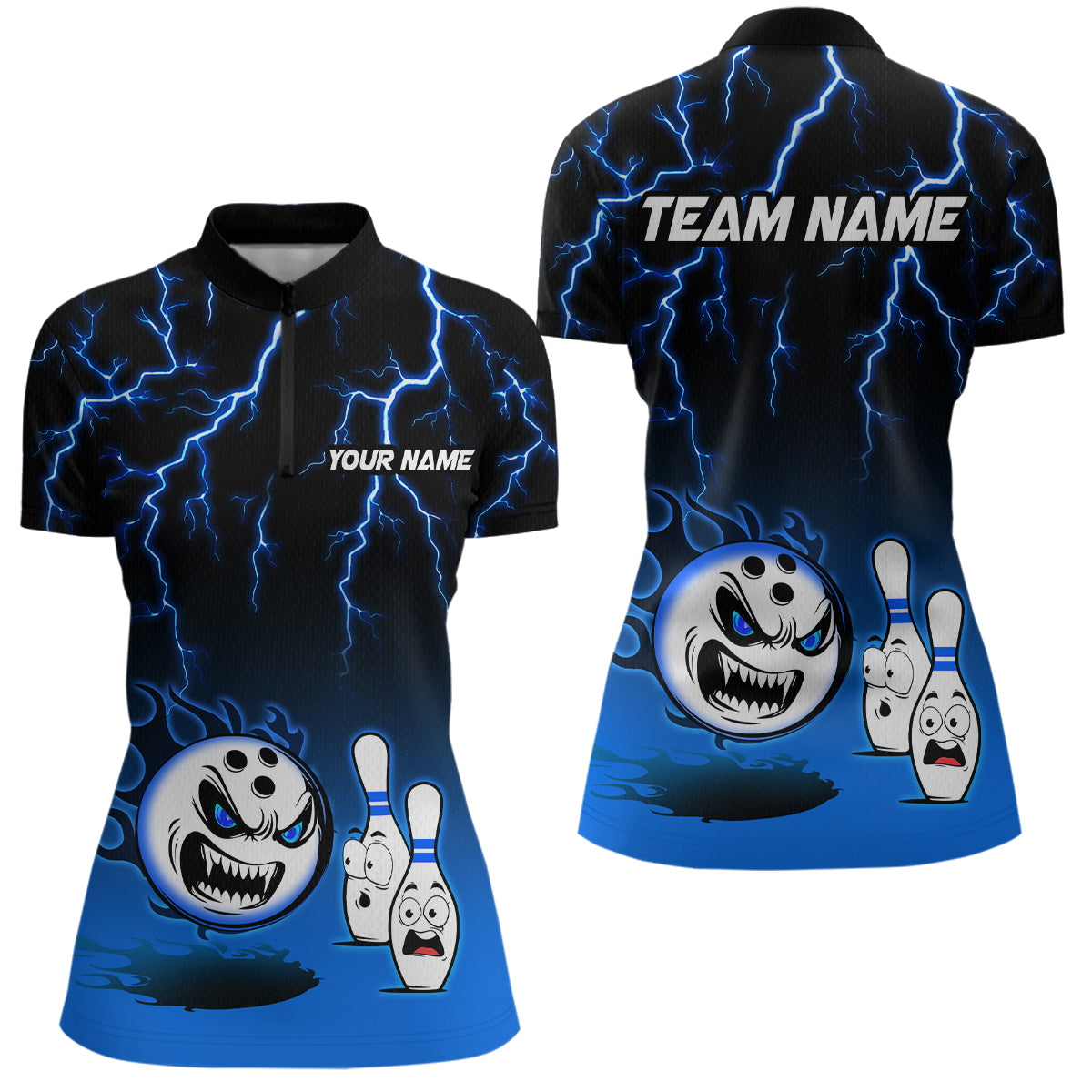 Blue Funny Crazy Bowling Shirt for Women Bowling Jersey Shirts Polo & Quarter- Zip Bowling League HNT17