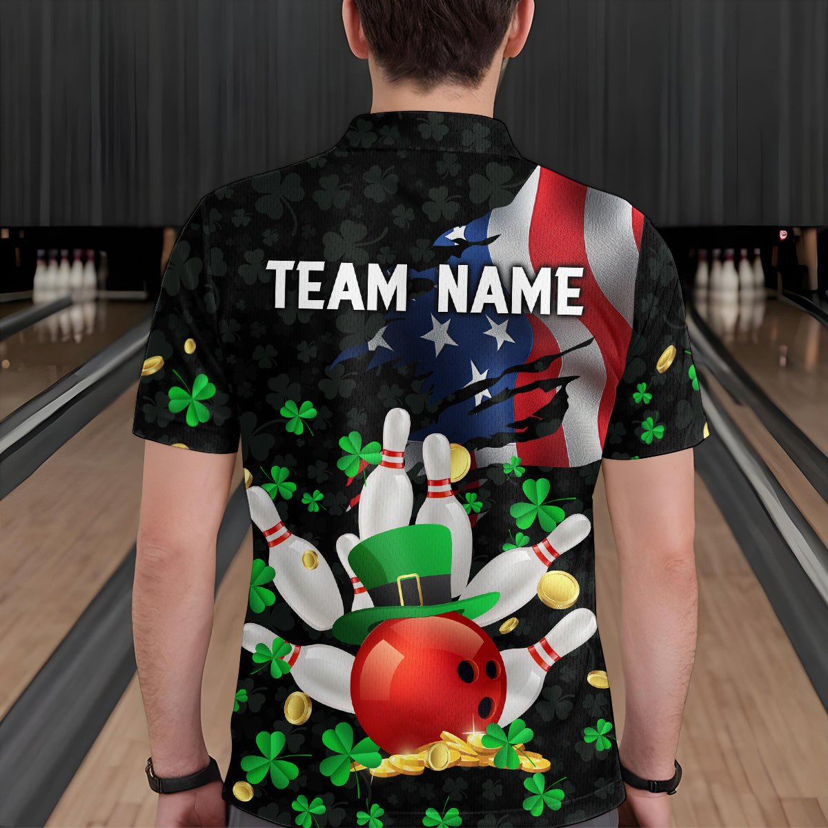 Personalized US Flag St Patrick Day Funny Bowling Shirt Men Team Polo & 1/4 Zip Shirts HNT12