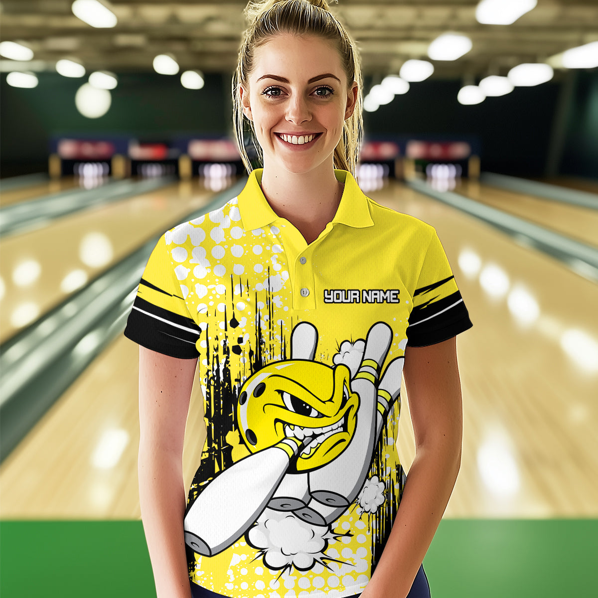 Personalized Yellow Funny Crazy Bowling Shirt for Women Polo & Quarter-Zip Bowling Jersey with Team HNT03