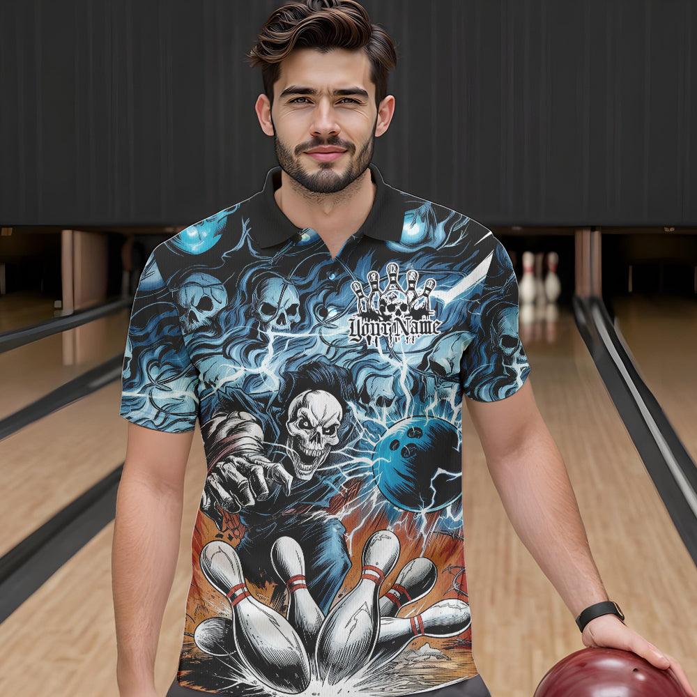 Custom Rock Style Skull Bowling Polo Shirts For Men, Funny Skeleton Bowlers Outfit IPHW8934