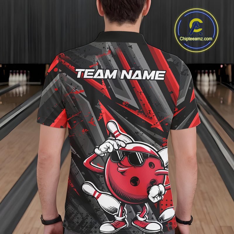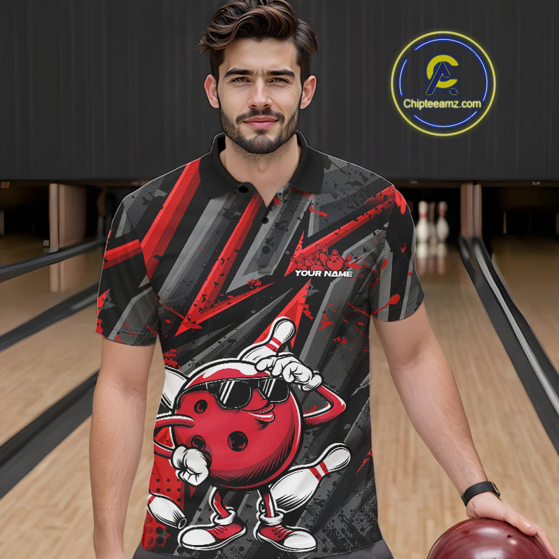 Black And Red Funny Custom Bowling Jerseys, Cool Bowling Polo Shirts For Men IPHW9361