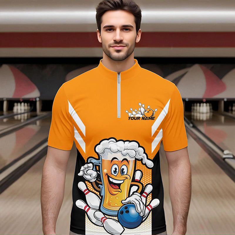 Custom Funny Beer Bowling Quarter-Zip Shirts For Men, Yellow Bowling Team Bowling League Shirt IPHW8930