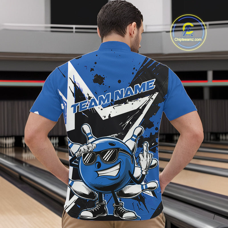 Custom Black And Blue Star Funny Bowling Quarter-Zip Shirts For Men, Bowling Tournament Shirt IPHW9359