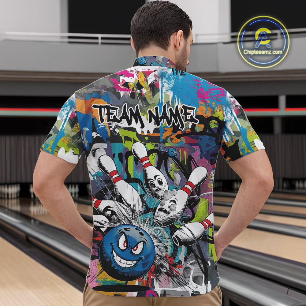 Custom Funny Graffity Bowling Quarter-Zip Shirts For Men, Bowling Team Shirt IPHW9381