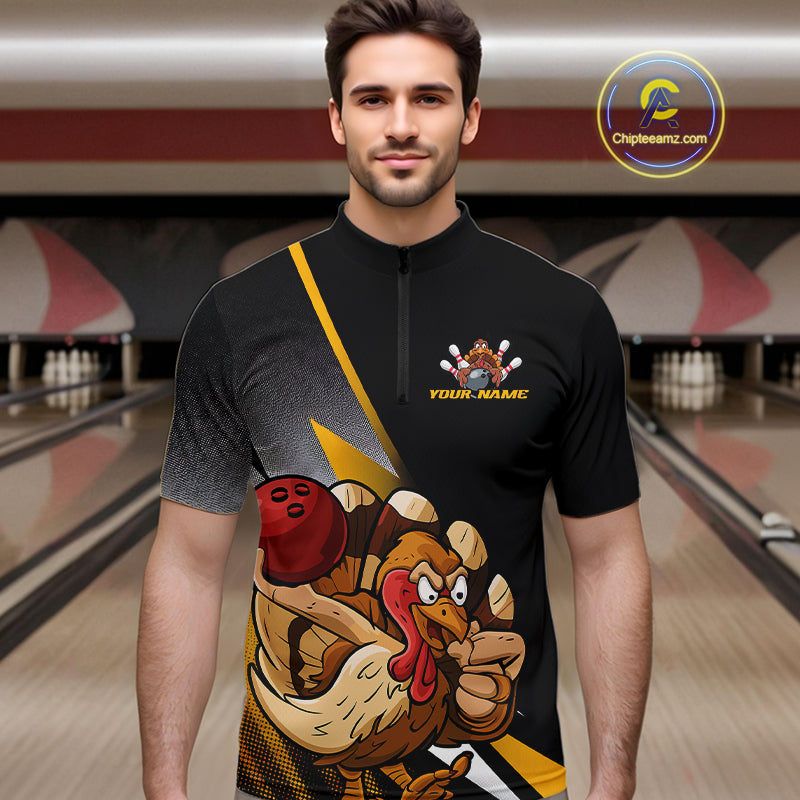 Custom Funny Yellow Turkey Bowling Team Men Quarter-Zip Shirts, Thanksgiving Bowling Shirt IPHW9784