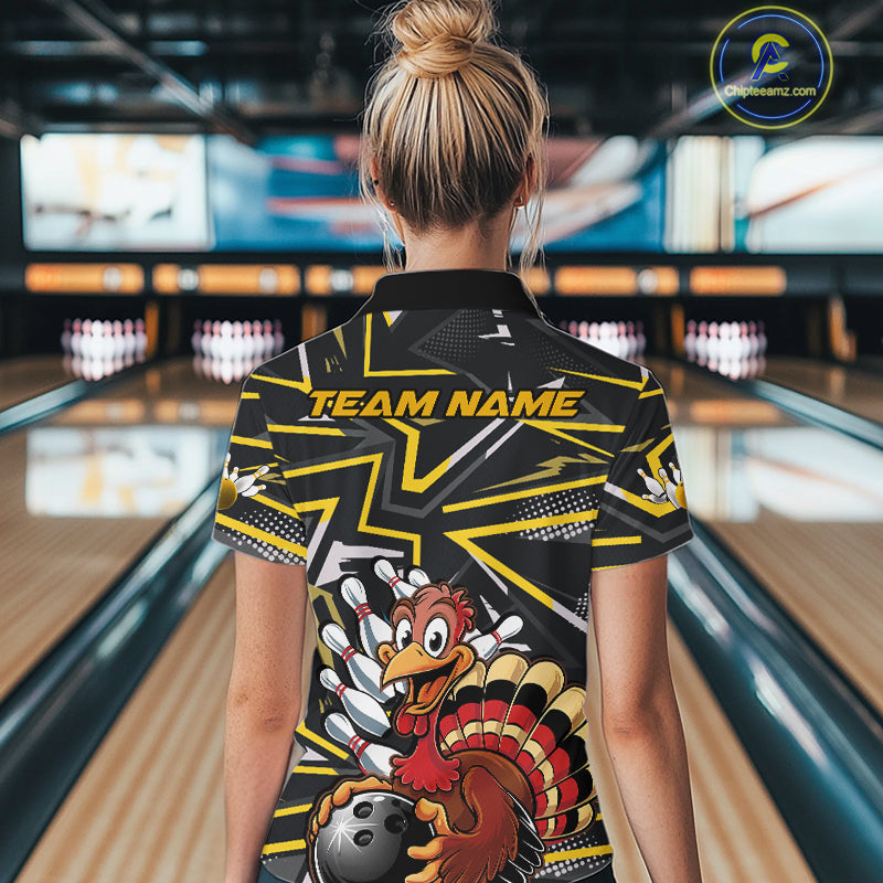Custom Funny Turkey Bowling Jerseys, Yellow Thanksgiving Bowling Women Quarter-Zip Shirt IPHW9722