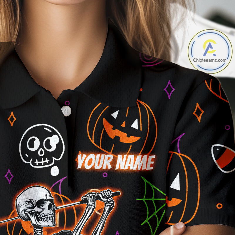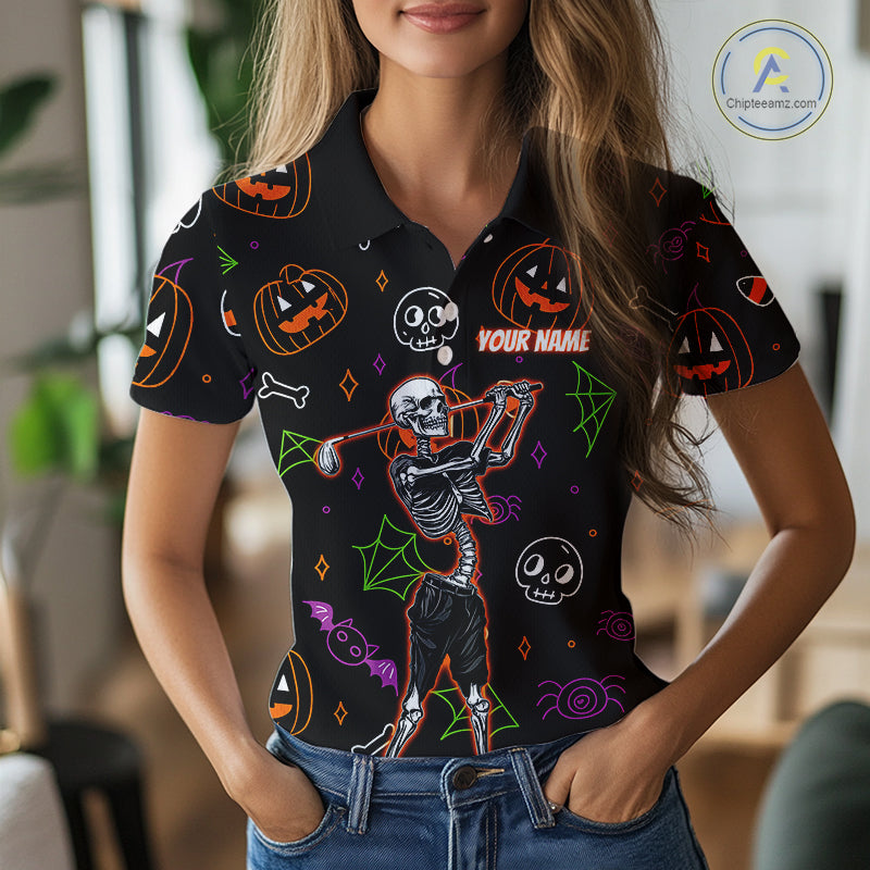 Personalized Funny Halloween Pattern Skull Golf Polo Shirts For Women, Halloween Ladies Golf Gifts NQS10836