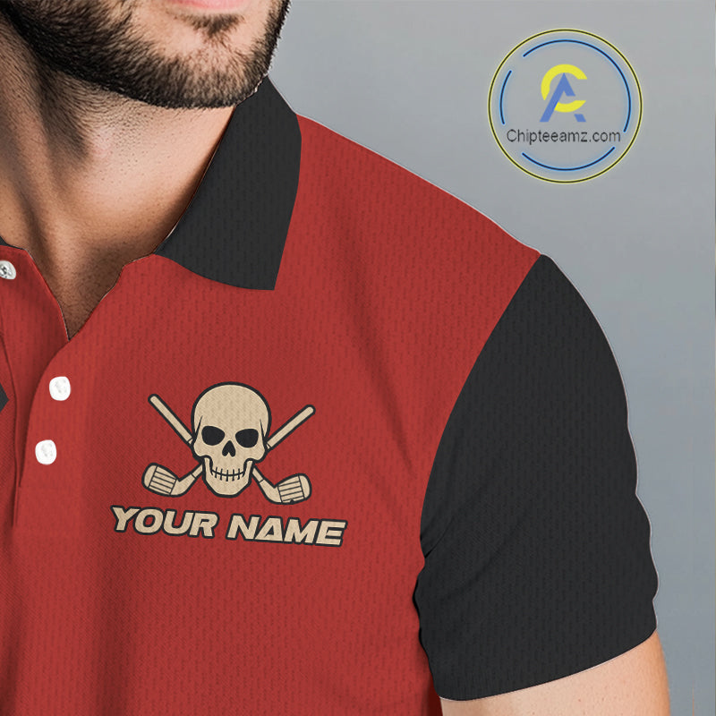 Red and Black argyle pattern Skull Golf Polo Shirts for men Custom mens golf outfit, funny golf gifts NQS10250