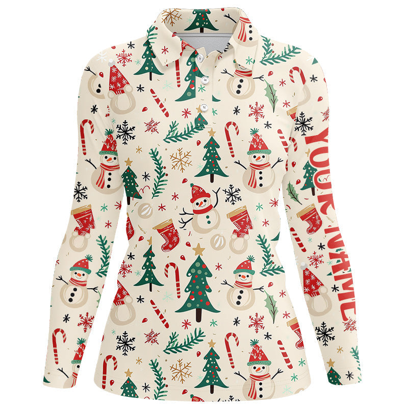 Funny Christmas pattern custom Women golf polo shirts, personalized Christmas golf gifts for team NQS8677
