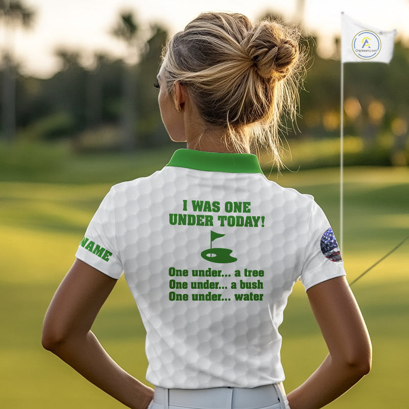 Funny Women golf polo shirts green and white custom I was one under today, under a tree, bush, water NQS10165