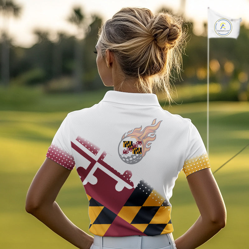 Maryland Flag Women golf polo shirt Custom patriotic golf outfit for ladies NQS10105