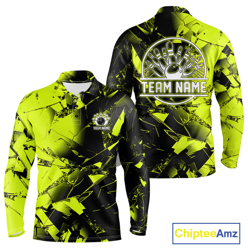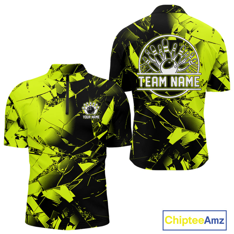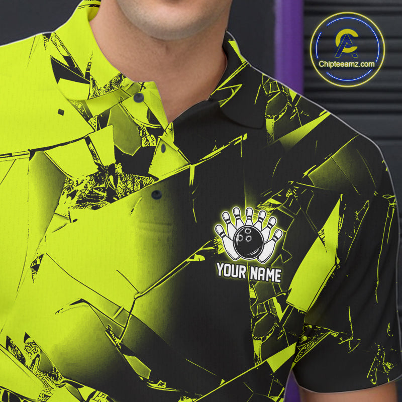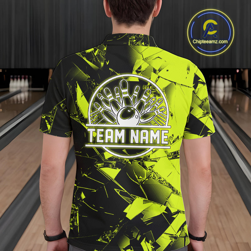 Custom Broken Glass Black and Green Neon Bowling Shirts For Men, Bowling Team League Jerseys NQS11174