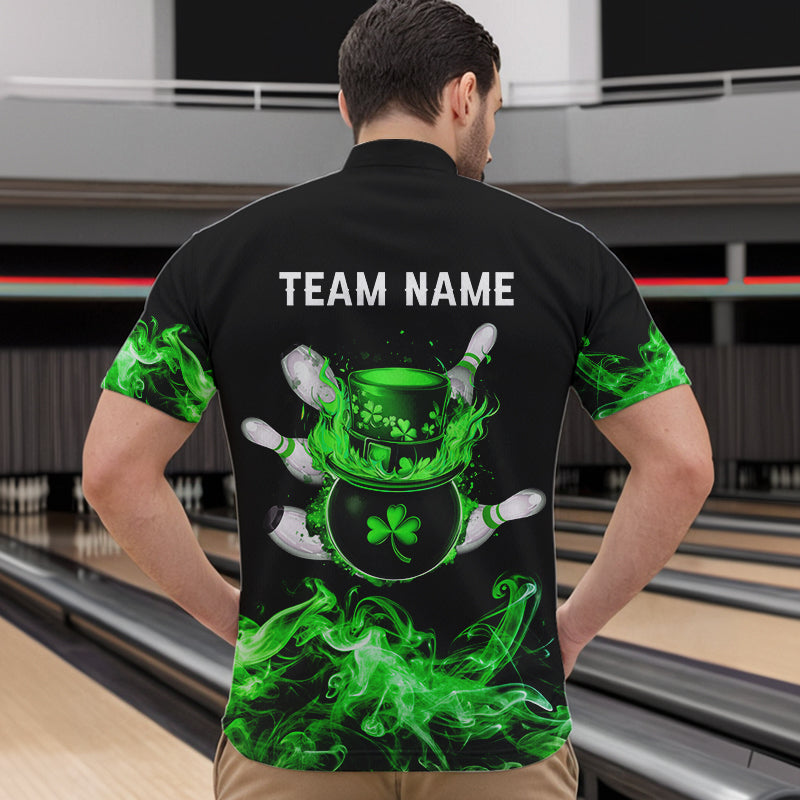 Green Flame Smoke Lucky clover Bowling Shirts For Men Custom St Patrick Day Bowling Team Jersey NQS9451
