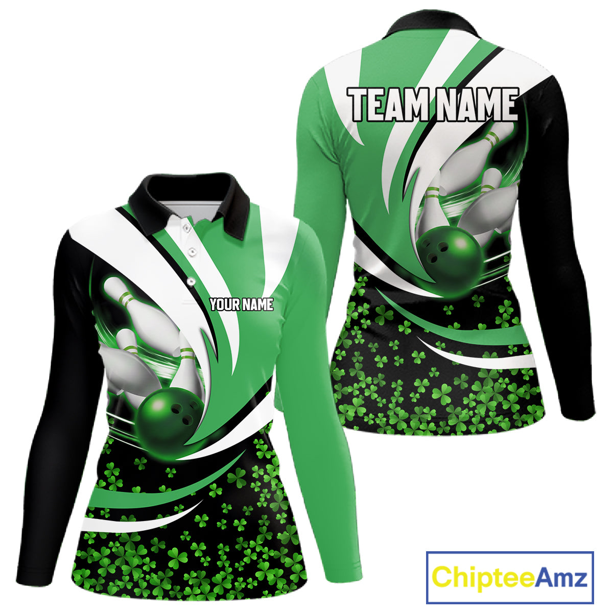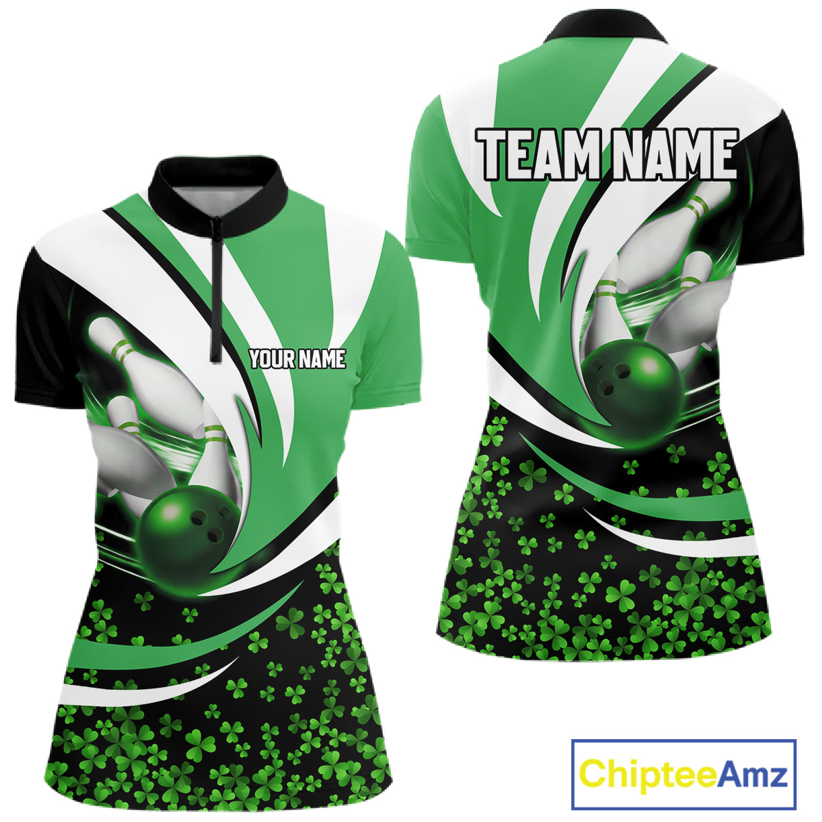 Green shamrock pattern Bowling Shirts For Women custom St Patrick's Day bowling outfits team jerseys NQS11166