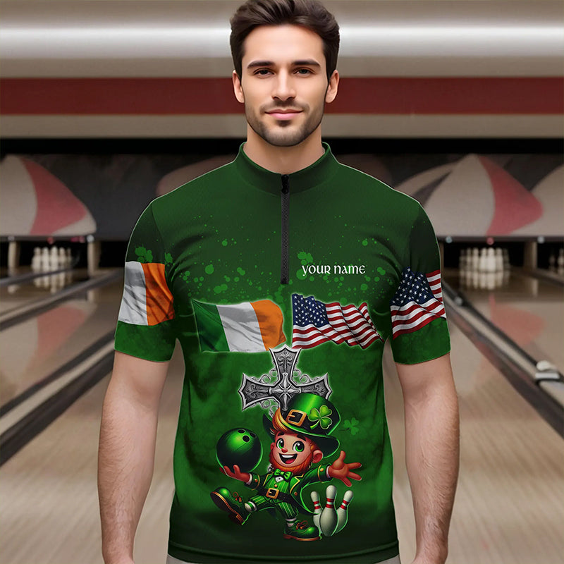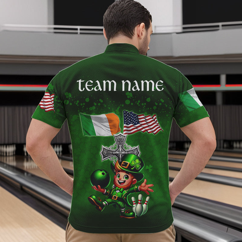 Irish American Flags Green Shamrock Bowling Shirts For Men Custom St Patrick Day Team Bowling Jerseys NQS9388