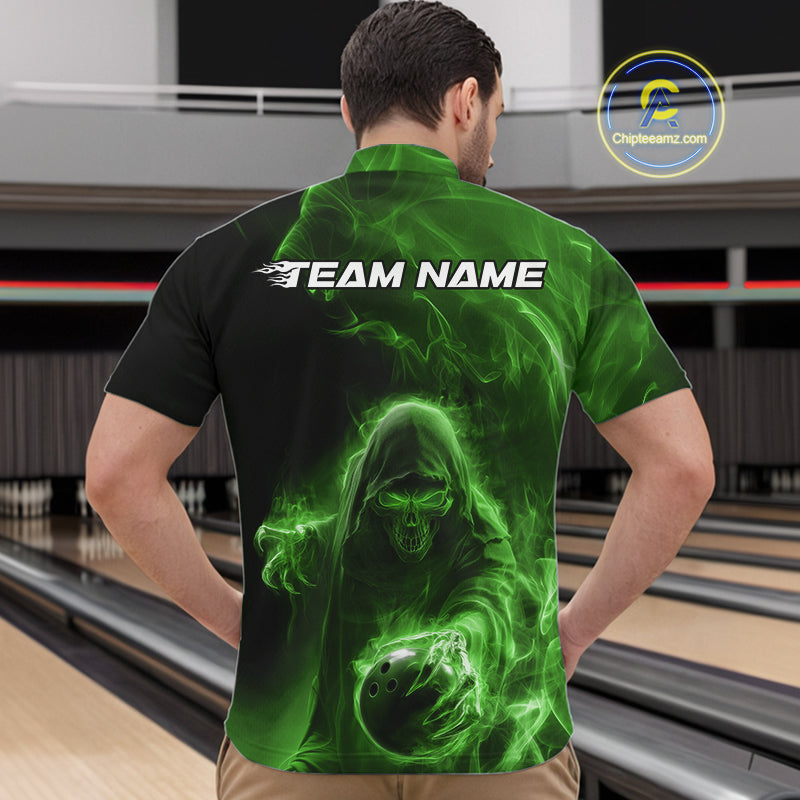 Custom Black And Green Smoke Flame Grim Reaper Halloween Bowling Men Quarter-Zip Shirts IPHW9741