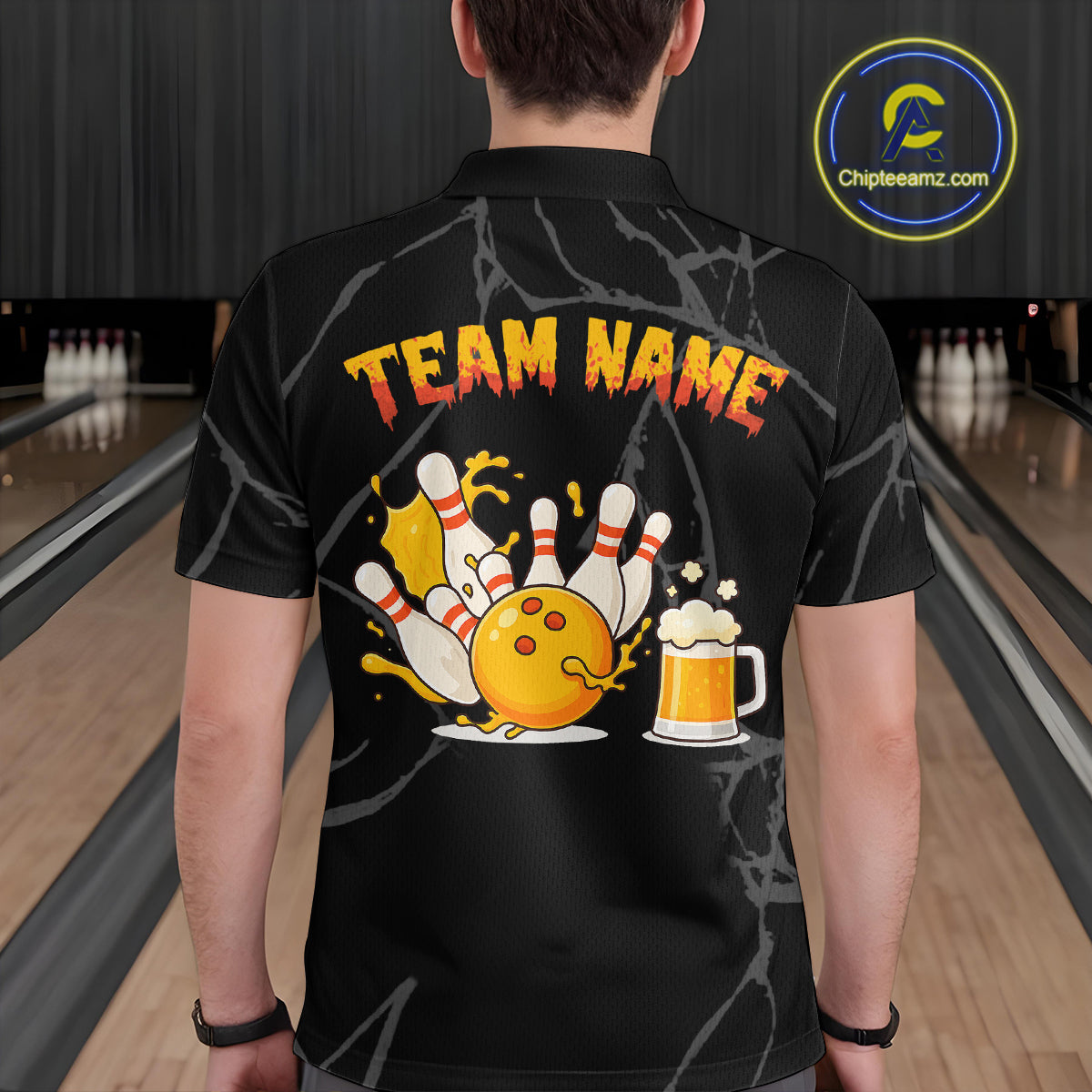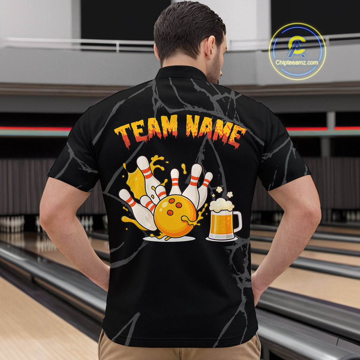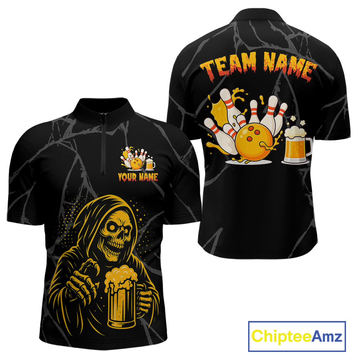 Bowling And Beer Custom Skull Bowling Shirts For Men, Halloween Bowling Outfits NQS10518