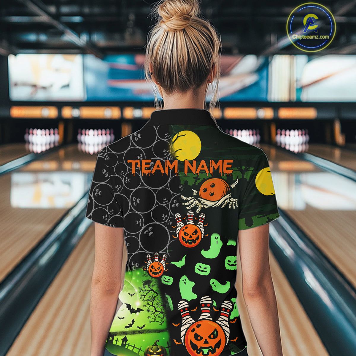 Custom Funny Halloween Team Bowling Shirts For Women, Personalized Halloween Bowling Gifts NQS10833