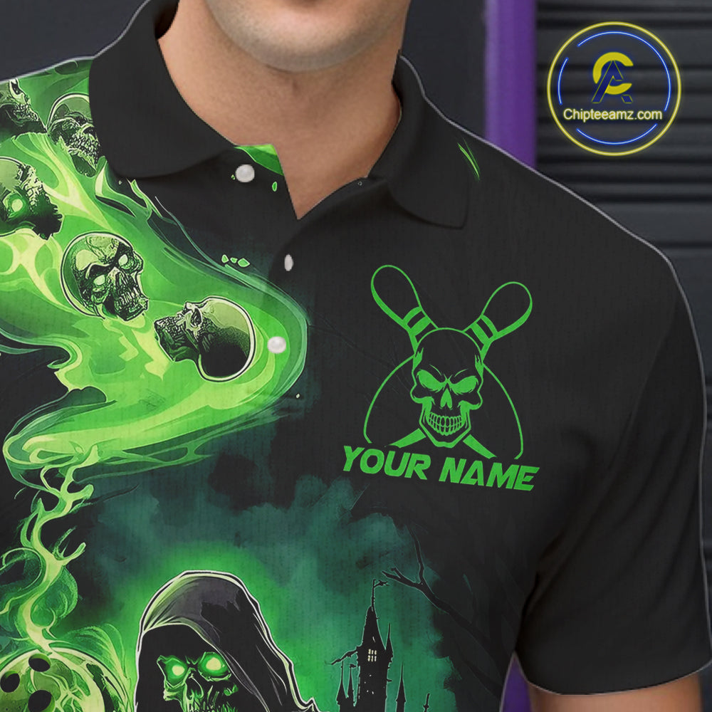Black And Green Grim Reaper Custom Halloween Bowling Team Shirts For Men, Bowling Gifts IPHW7612