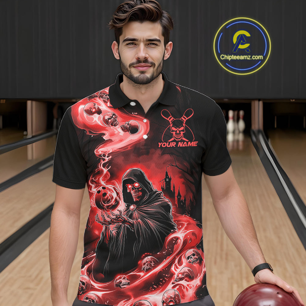 Black And Red Grim Reaper Custom Halloween Bowling Team Shirts For Men, Bowling Gifts IPHW7614