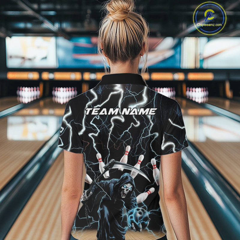 Custom Blue Lightning Grim Reaper Bowling Women Quarter-Zip Shirt, Halloween Outfit IPHW9796