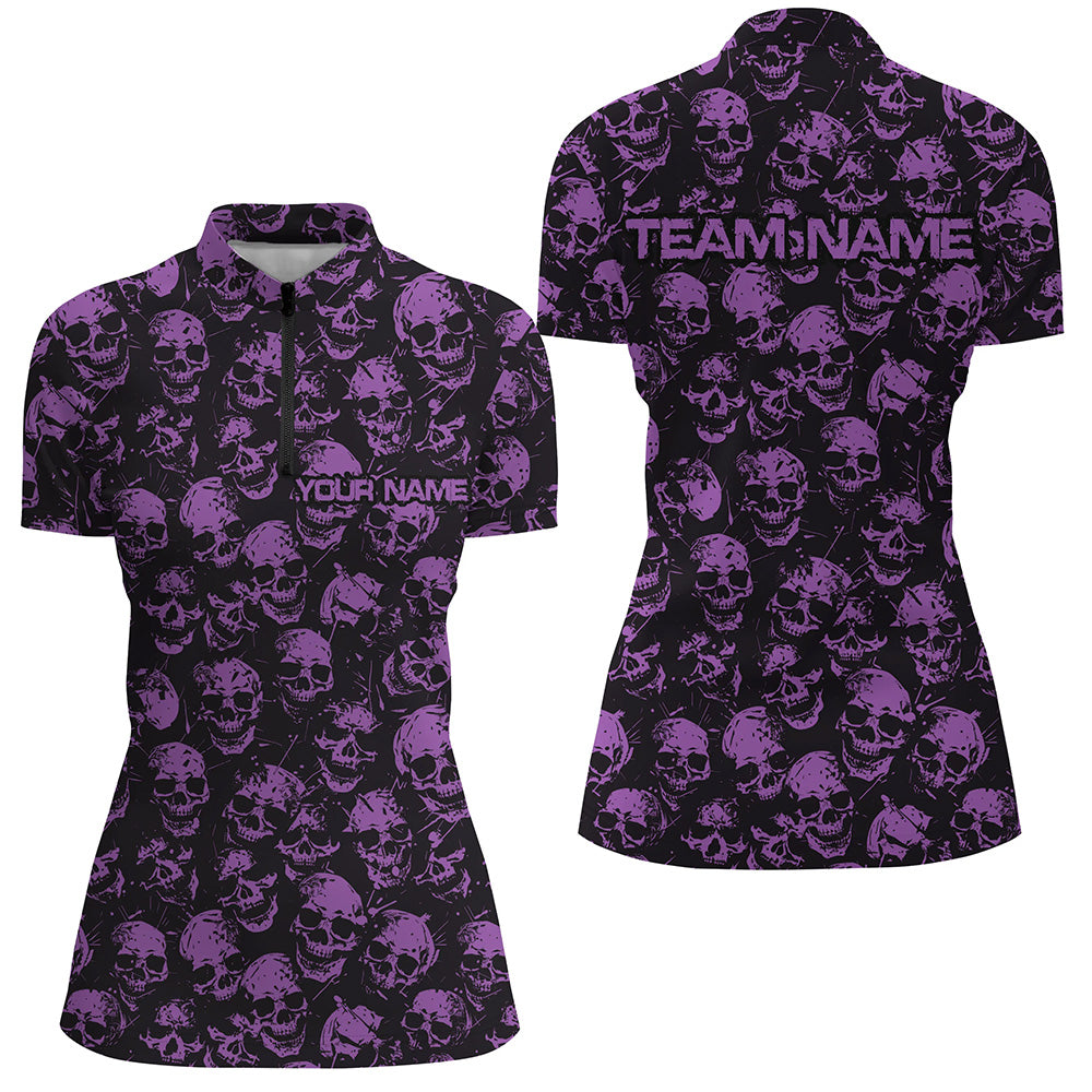Custom Black And Purple Skull Halloween Ladies Bowling Shirts, Halloween Outfit For Bowlers IPHW7165