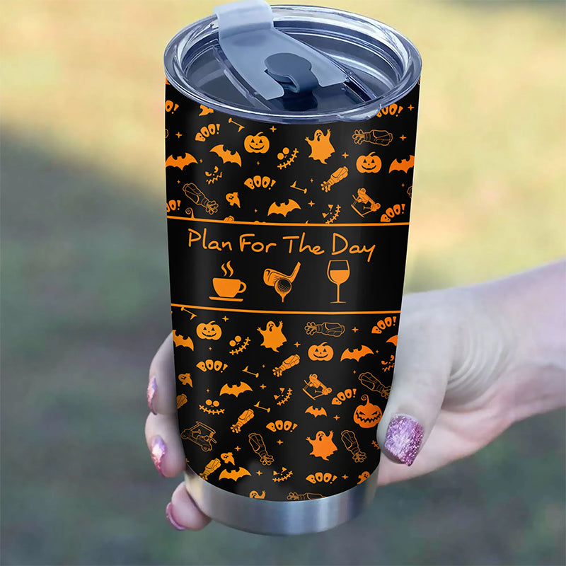 Black orange Halloween background Custom Stainless Steel Tumbler Cup plan for the day coffee golf wine NQS6395