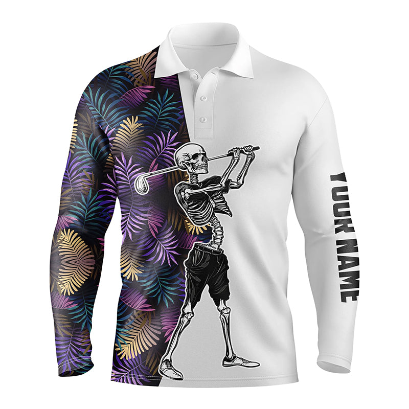 Funny Skull Golf polo shirts colorful tropical leaves pattern custom Skull playing golf apparel NQS4774