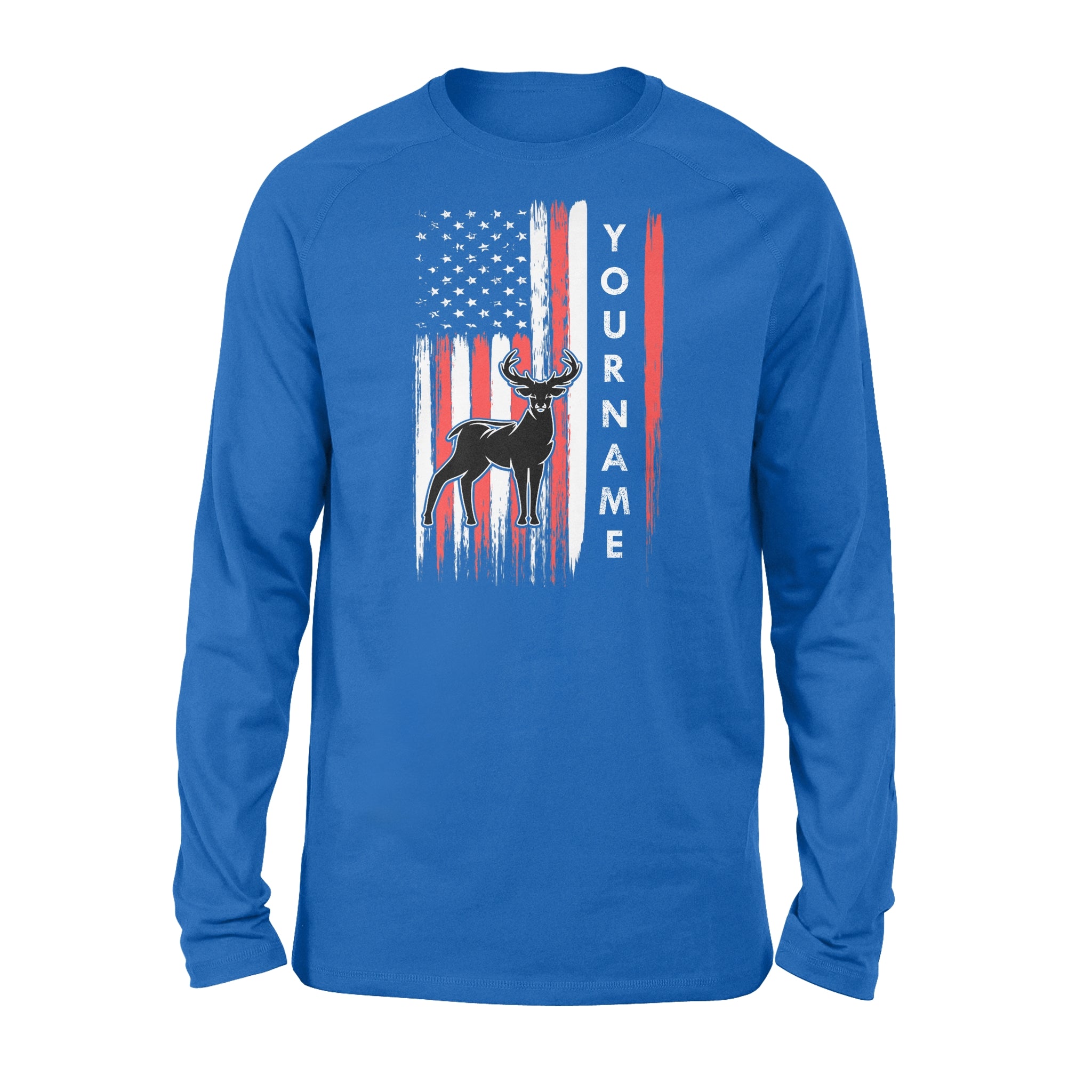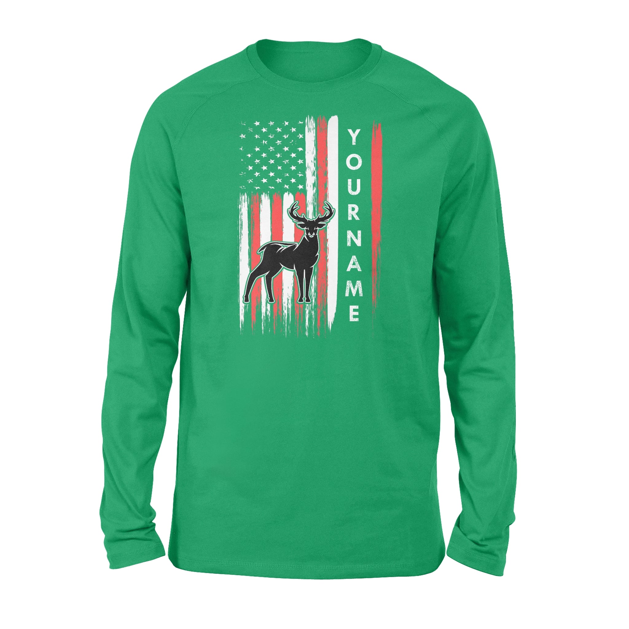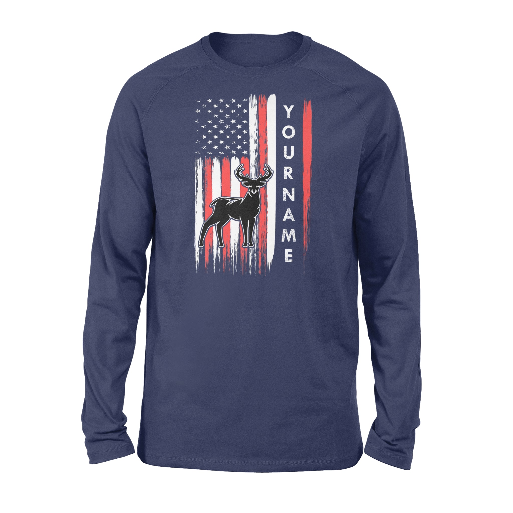 American flag deer hunting custom name shirt, personalized deer hunting apparel Long Sleeve- NQS1206