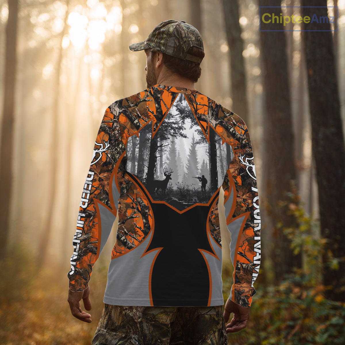 Inspired by the thrill of the hunt and the beauty of the outdoors, this shirt combines durability, comfort, and a unique hunting vibe. Customize it with your name or preferred design elements — from deer graphics to scenic landscapes — to create a one-of-a-kind piece. A perfect gift for passionate deer hunters and outdoor lovers, especially during hunting season.