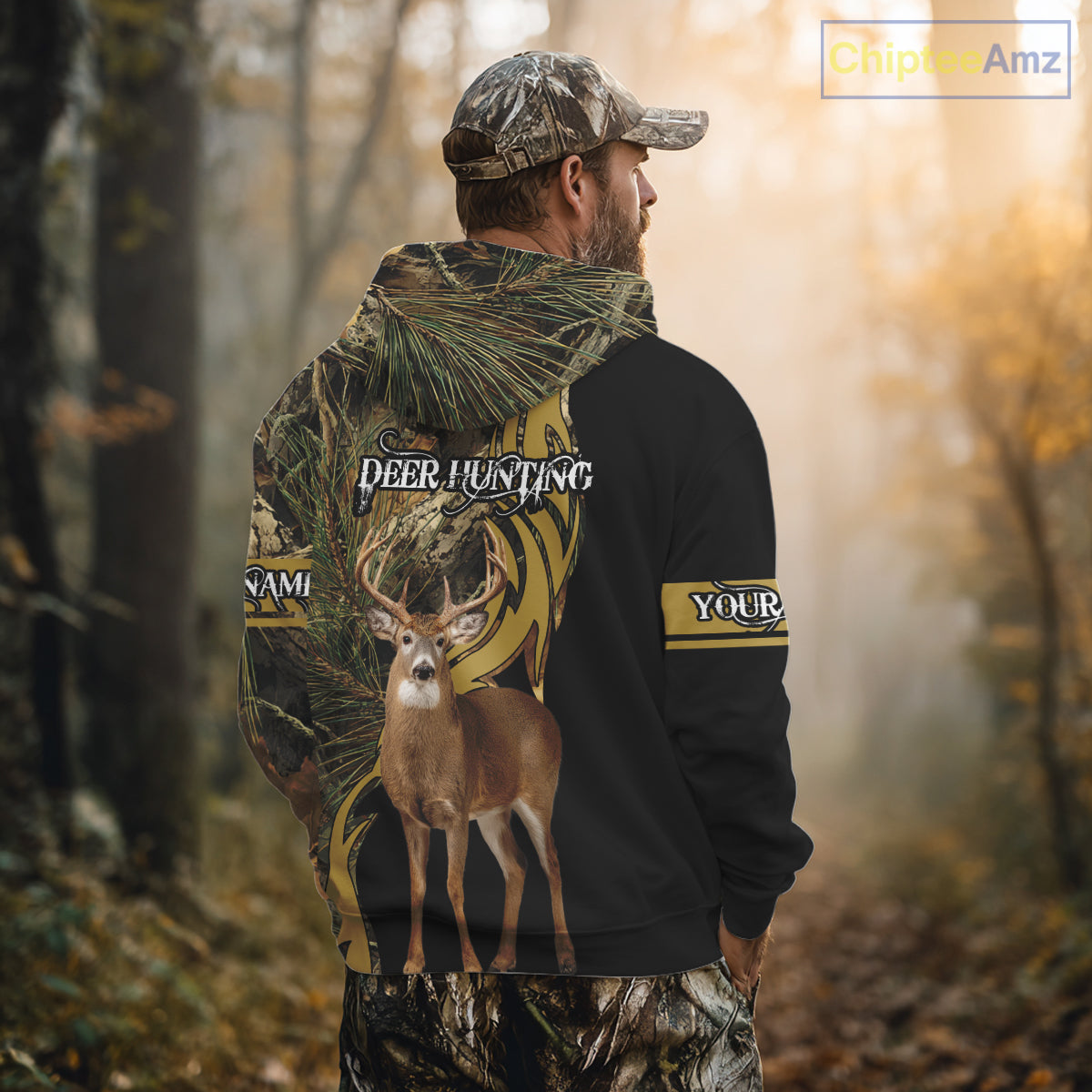 Deer Hunting 3D Black Camo Forest Custom Name All Over Print Shirt, Deer Hunting Gifts NHT208