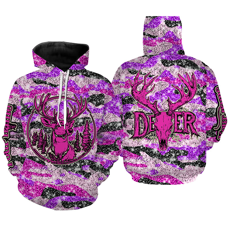 Pink glitter camo hunting Customize Name 3D All Over Printed Shirts, Deer hunting shirts for women NQS1051