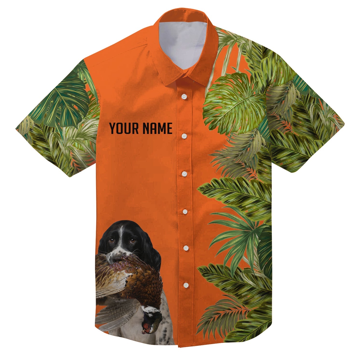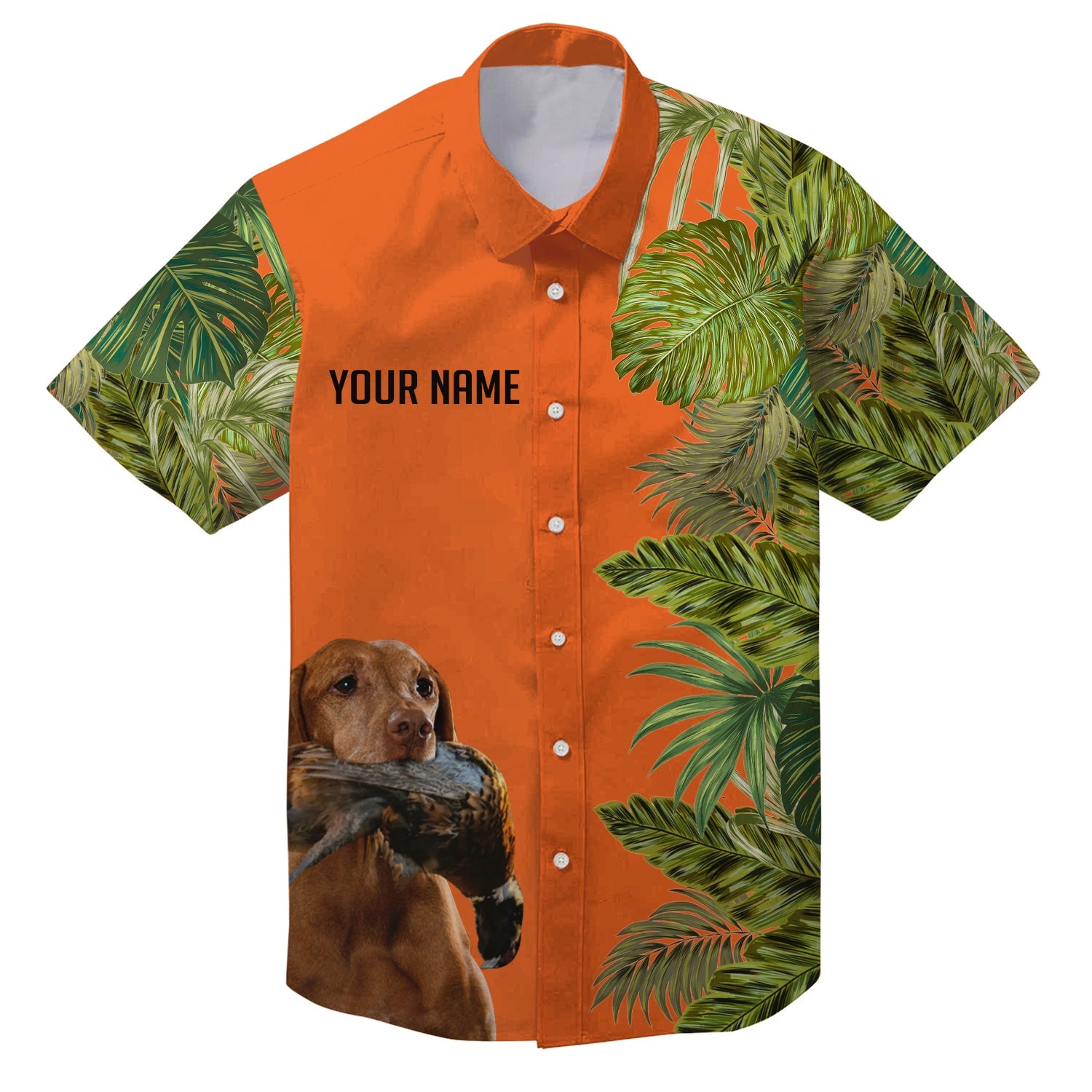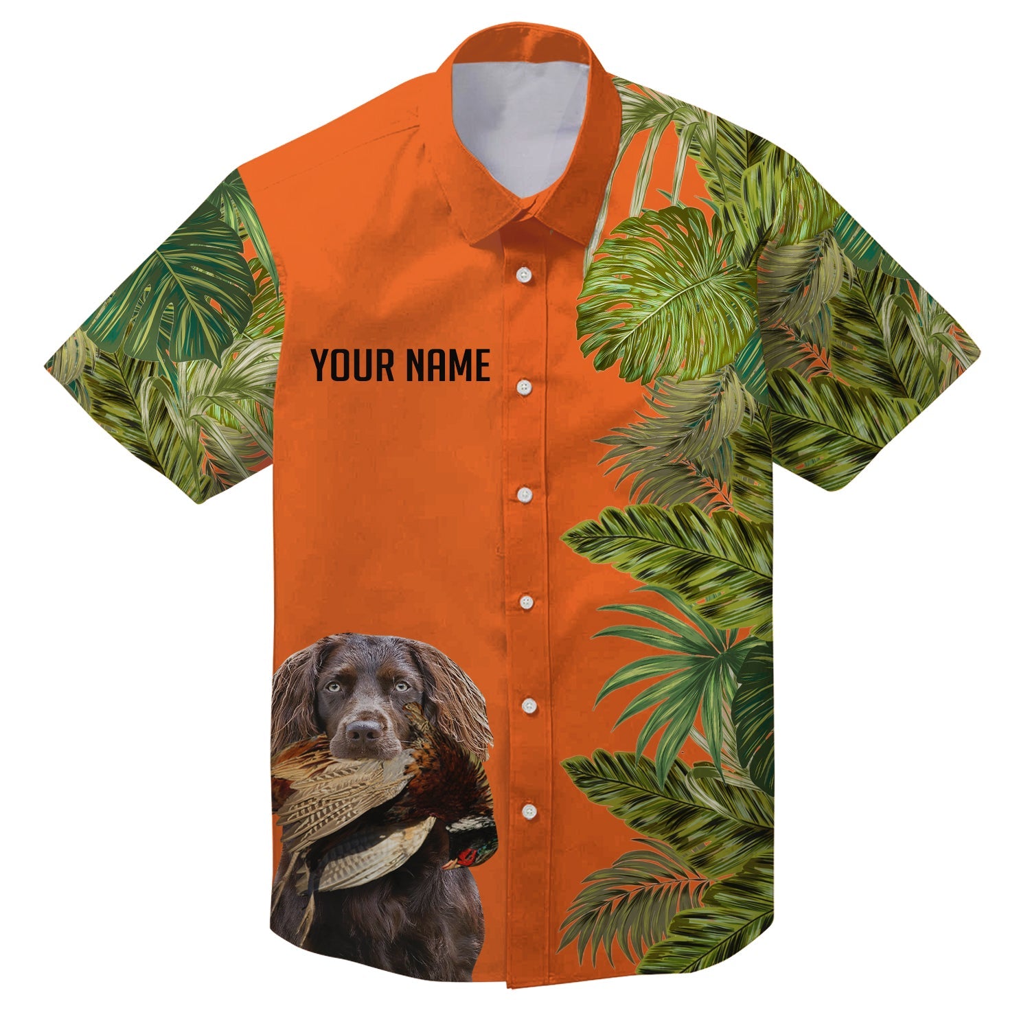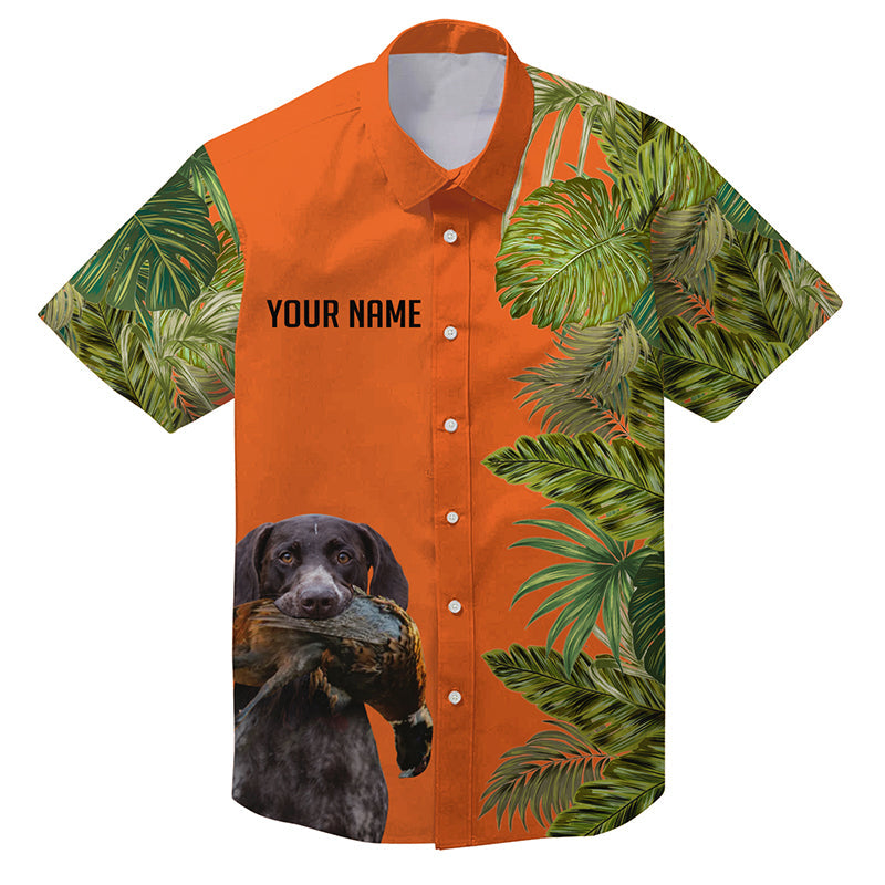 Custom Name Tropical Leaves Hawaiian Shirts With Many Hunting Dog Breeds to Choose, Personalized Gifts FSD4182