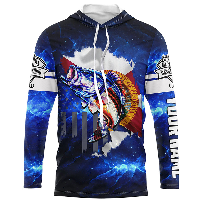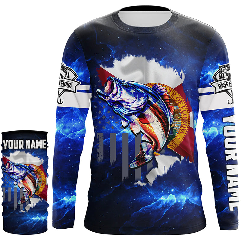 Florida Bass Fishing US blue galaxy shirts for men Custom Performance Long Sleeve fishing shirts NQS3128