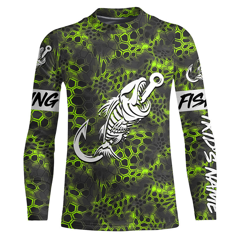 Green Camo fishing shirts Fish hook skull Custom Name sun protection mens long sleeve fishing shirts NQS5085