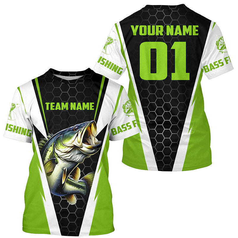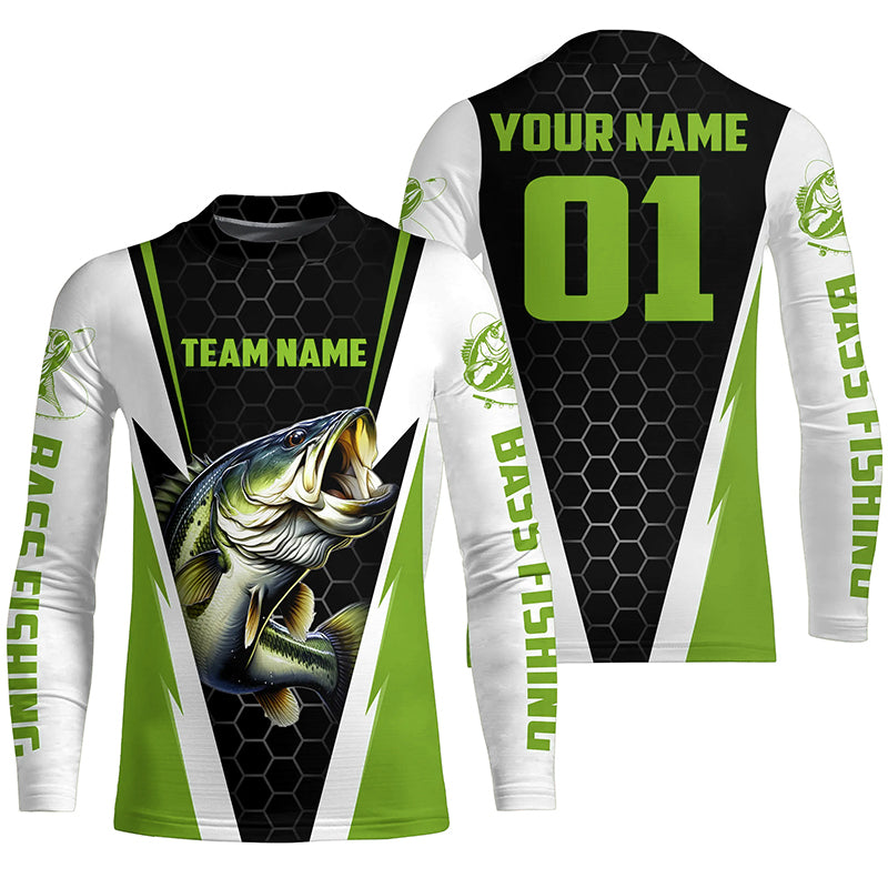 Personalized Bass Fishing Sport Jerseys, Bass Fishing Long Sleeve Tournament Shirts |Green IPHW3743