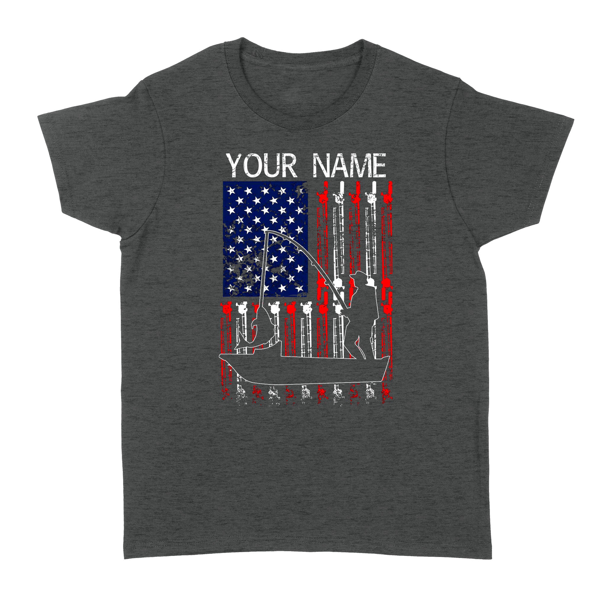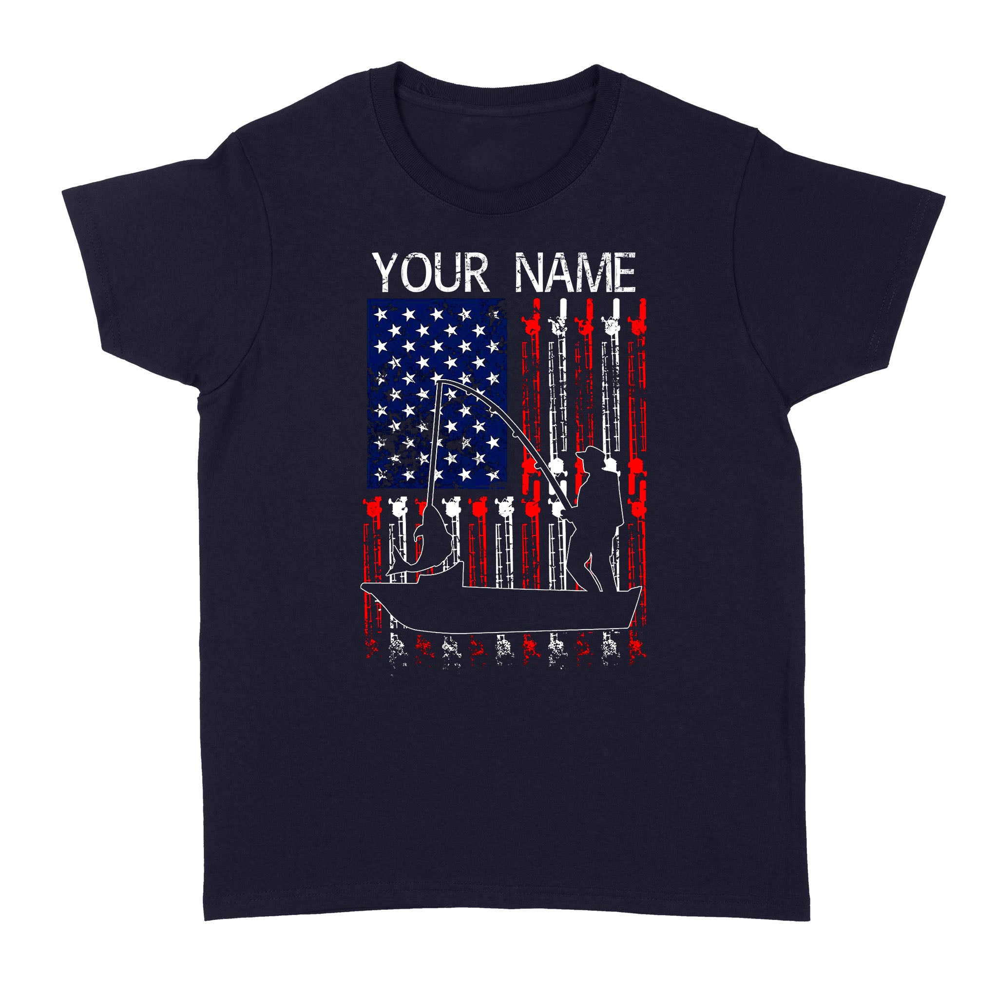 American flag fisherman kayak fishing custom name US fishing rod D05 NQS1244 - Standard Women's T-shirt