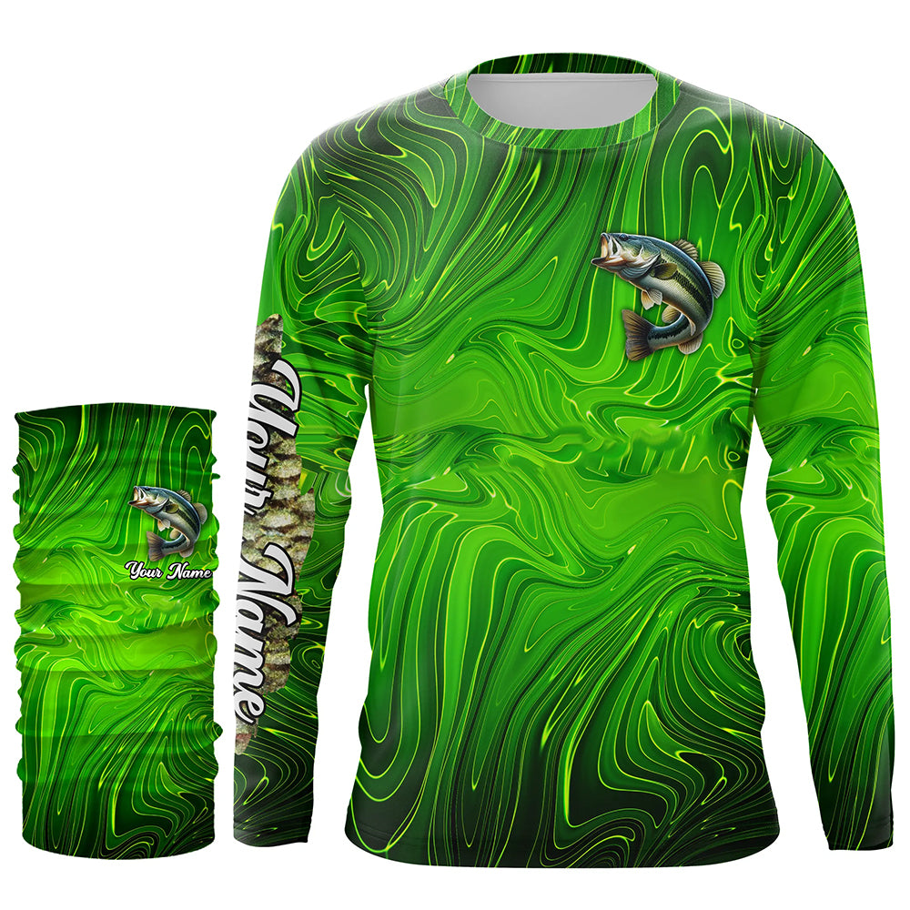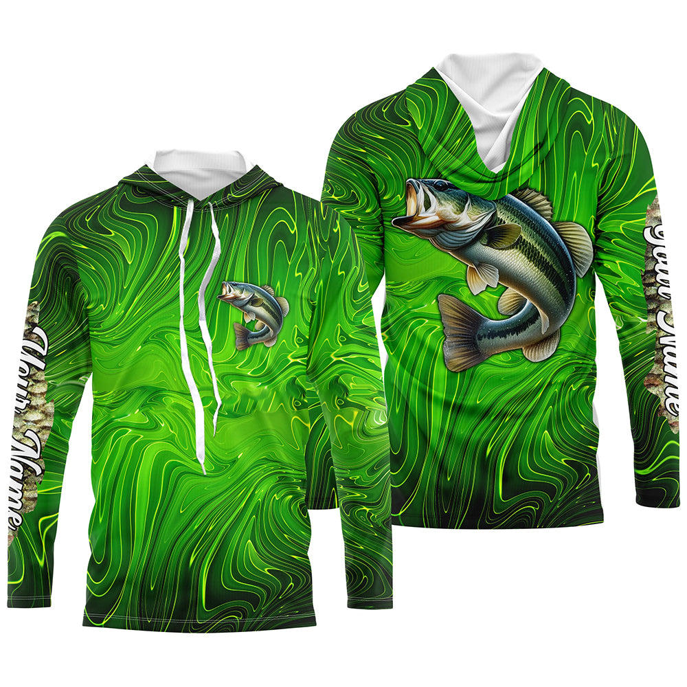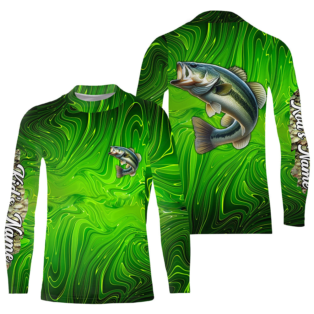 Bass fishing green camo customize name performance long sleeves Fishing shirts for men, women, kid NQS6061