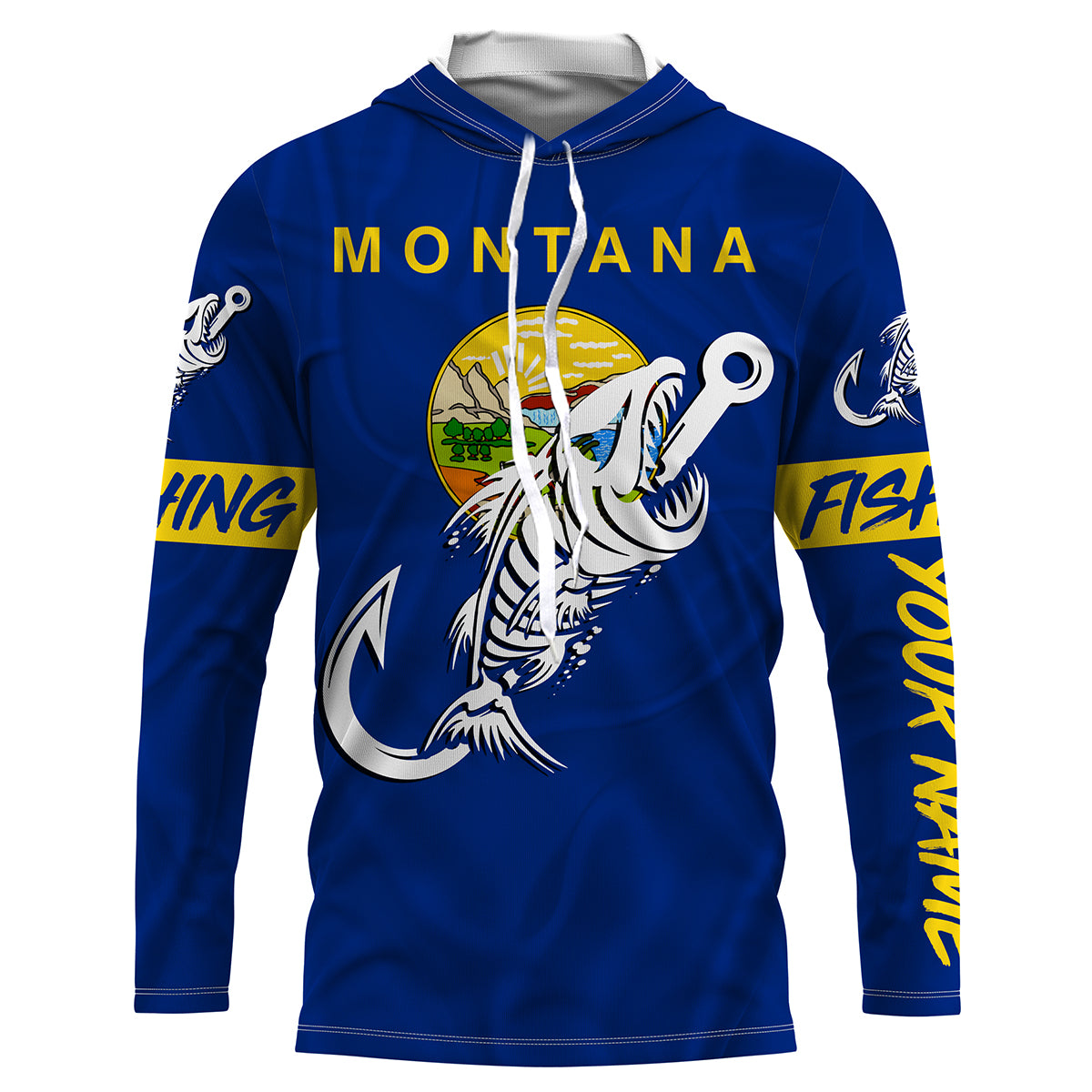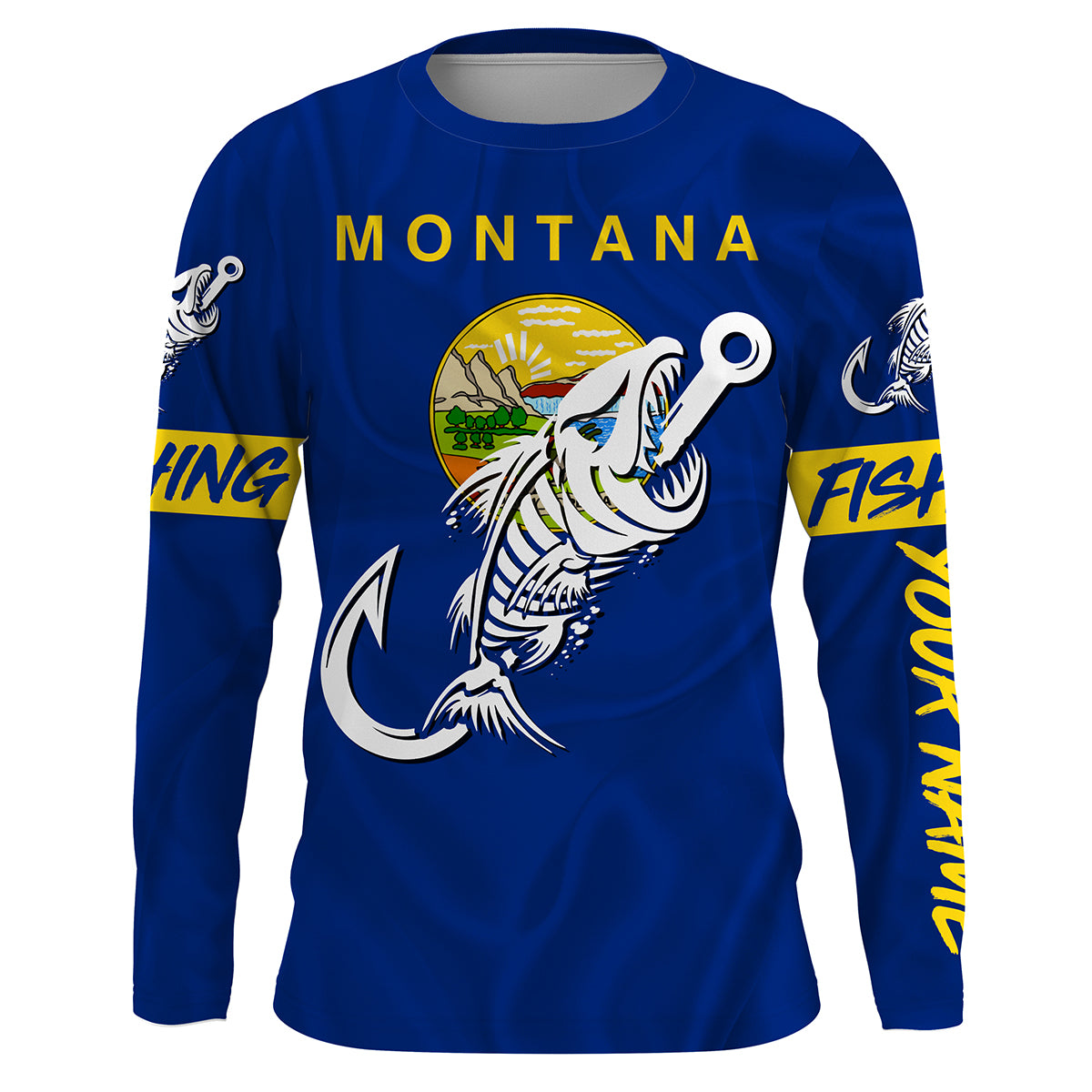 MT Fishing Custom Montana Flag Fish hook skull Custom sun protection fishing shirts for men, women NQS3351