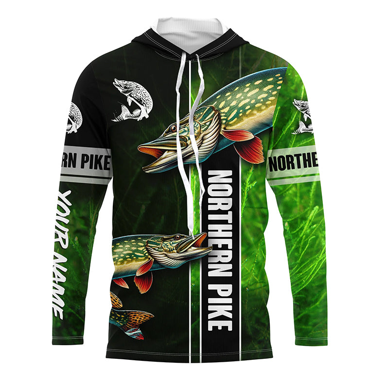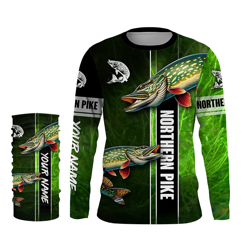 Northern Pike fishing green camo Custom Long Sleeve Fishing Shirts, fishing gifts for men, women, kid NQS5810